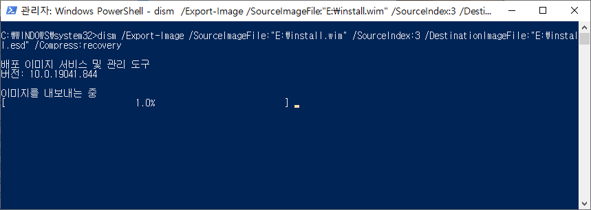 install.wim 파일 esd로 압축 하여 fat32 시스템에 넣기